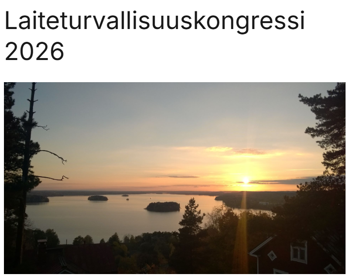 Laiteturvallisuuskongressi Tampereella 14.-15.4.2026 Kongressin teemoja ovat laiteturvallisuuden johtaminen ja sääntely sekä lääkinnällisten laitteiden riskienhallinta. Paikka: Scandic Rosendahl,…