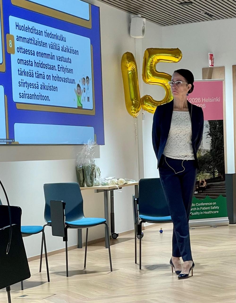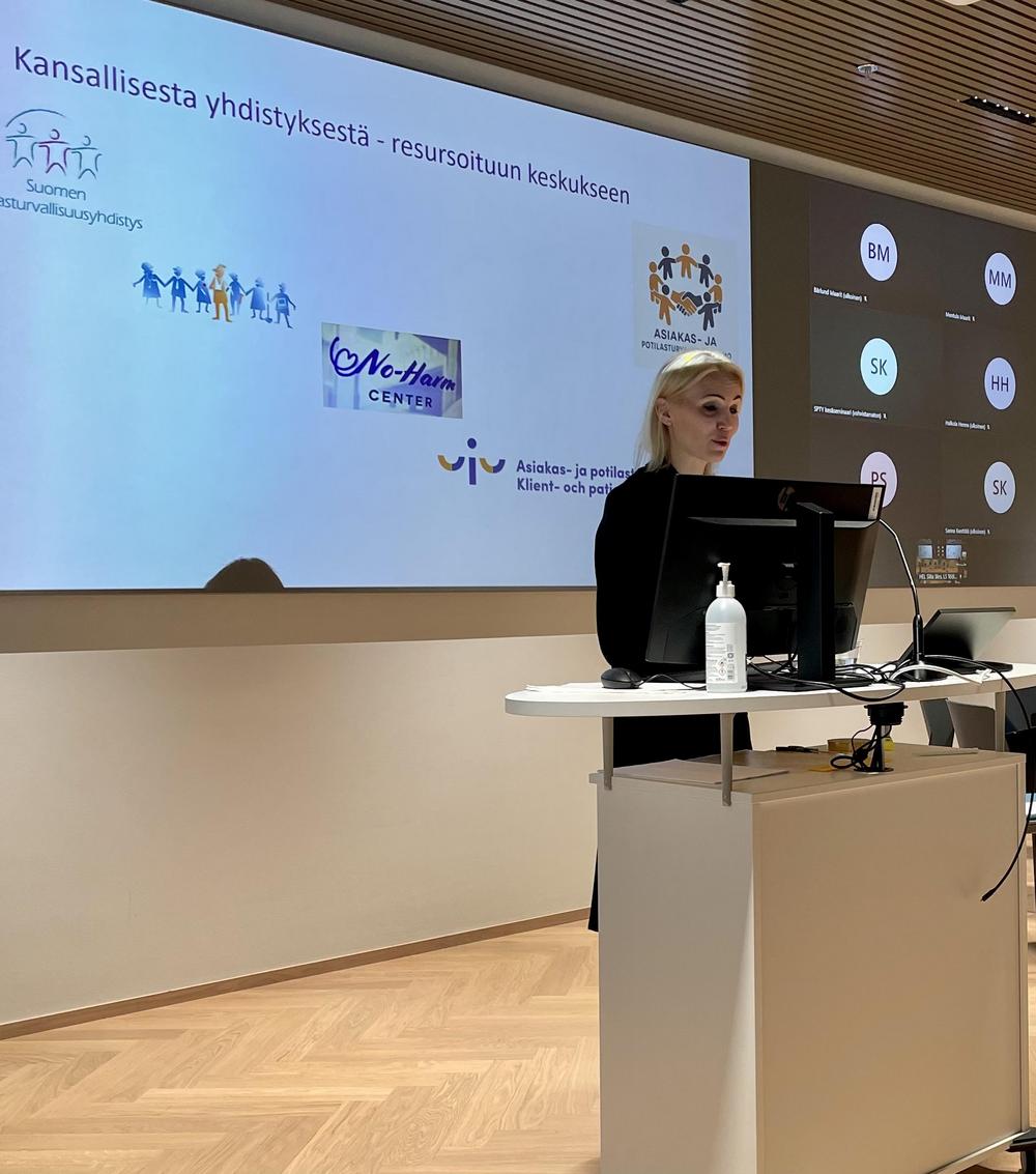 Paikalla seminaarissa oli runsaasti toimijoita ympäri Suomea. Kuulimme päivässä sosiaali- ja terveysministeri Kaisa Juuson tervehdys ja onnittelu yhdistykselle. Marina Kinnunen avasi yhdistyksen ja koko potilasturvallisuuden kehittymisen 15 viimeisenä vuonna. Kuulimme päivän aikana potilasturvallisuuden haasteista erikoissairaanhoidossa ja perusterveydenhuollossa. Lasten potilasturvallisuuden 10 keinoa esiteltiin ja aamupäivän osuuden lopuksi kuulimme miltä asiakasturvallisuuden turvallisuus näyttäytyy.